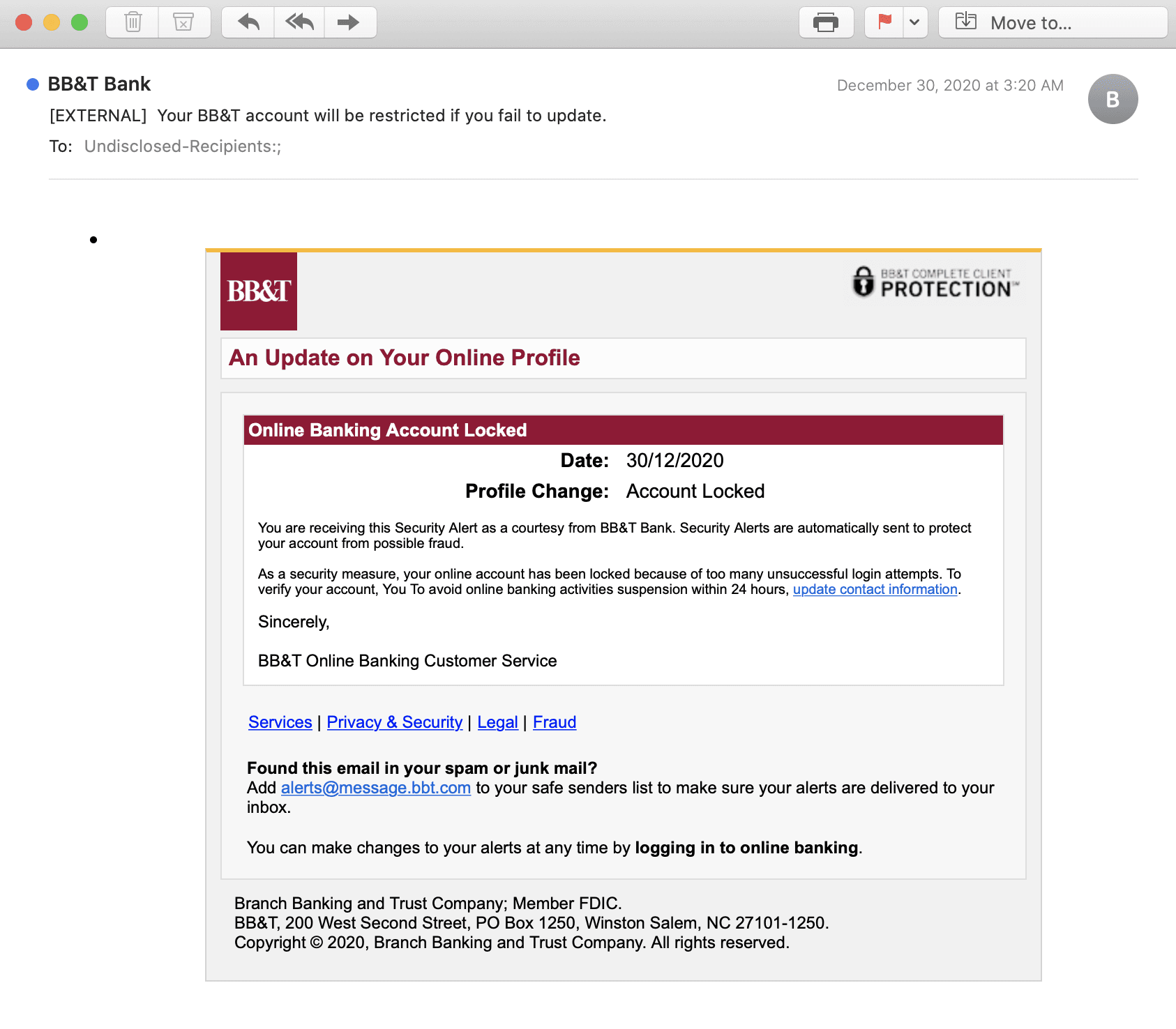 Bb T Bank Impersonated In Financial Phishing Abnormal Security